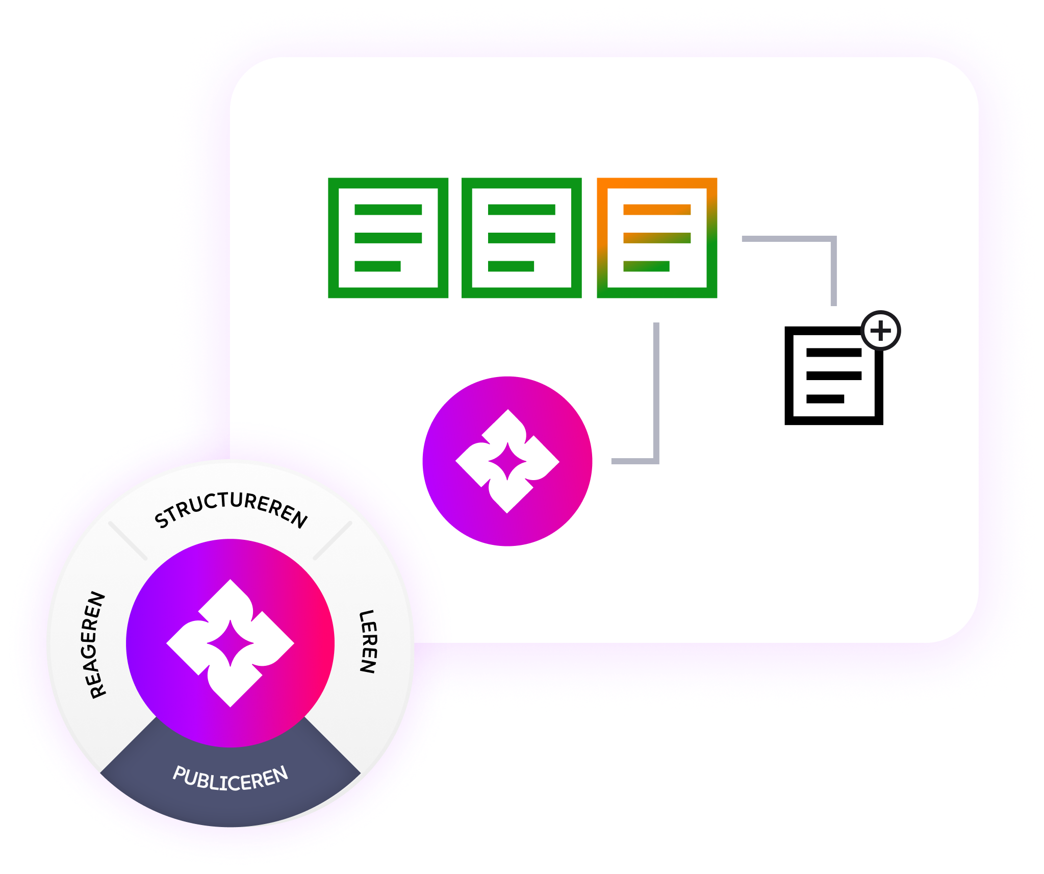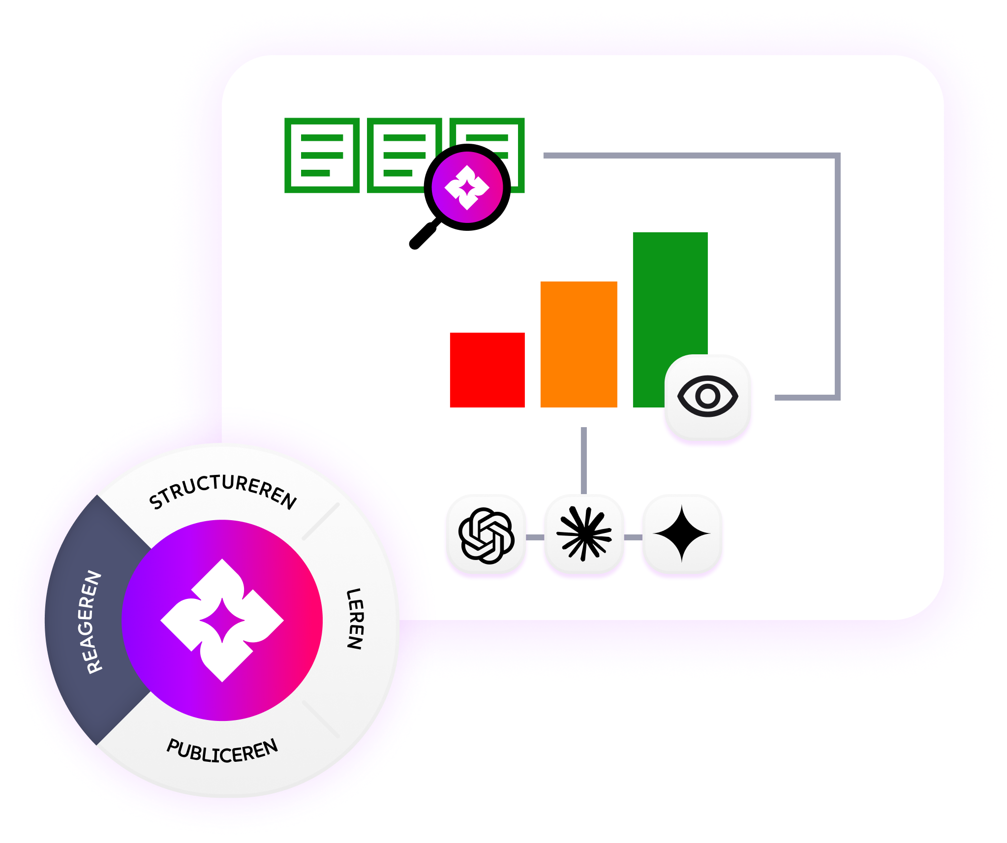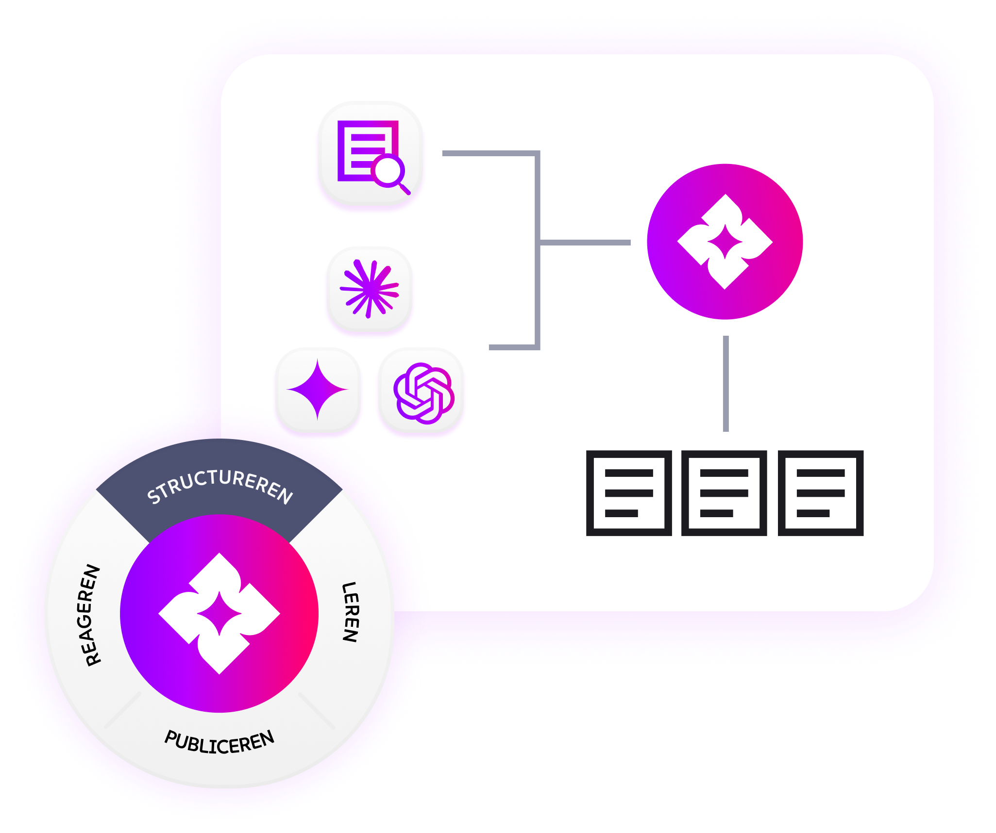 Tegelijk richten we je eigen Answer Engine in: een AI-zoekfunctie die antwoorden geeft op basis van jouw bronnen, mét bronvermelding en merkafspraken.